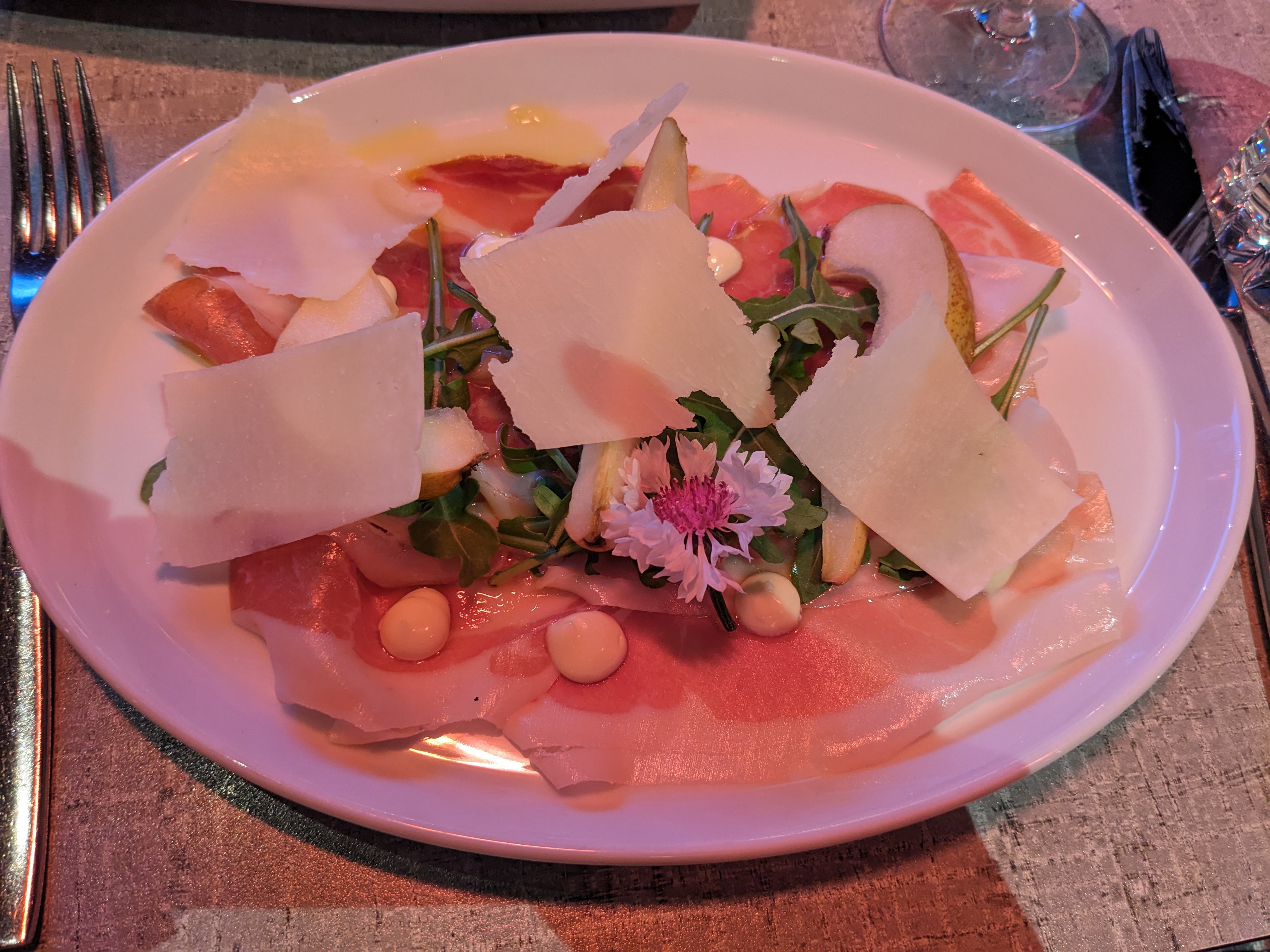 I did the usual trick of booking an early dinner at Peller, resulting in us having the place to ourselves at the start, and not that many other people by the end. When booking, I had mentioned my recent birthday, which resulted in us getting a complimentary glass of sparkling wine to start.